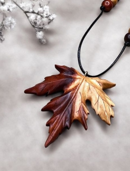 گردن اویز چوبی برگ پاییزی ساخته شده با دست