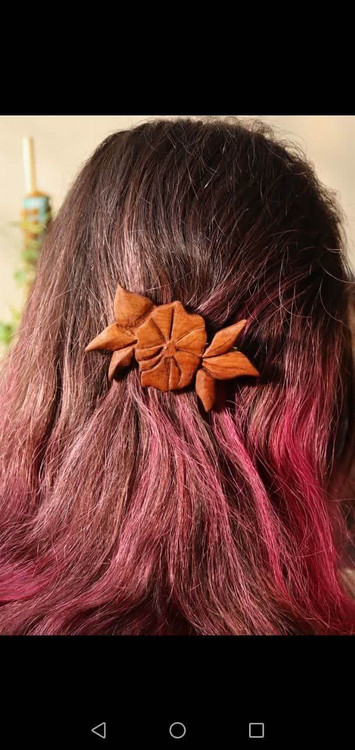 گیره مو چوبی طرح گل بسیار مینیمال و ظریف و تک نسخه