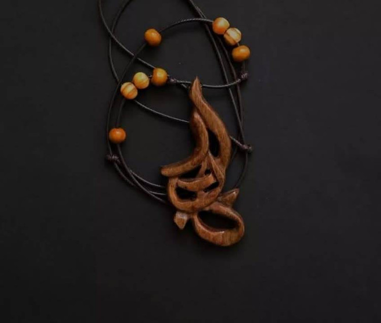گردن اویز چوبی اسم بهار بسیار سبک و شیک با بند چرم قابل تنظیم و مهره چوبی