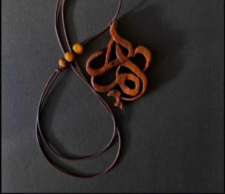 گردن آیز چبی اسم المیرا با بند چرم قابل تنظیم و مهره چوبی بسیار شیک و ظریف