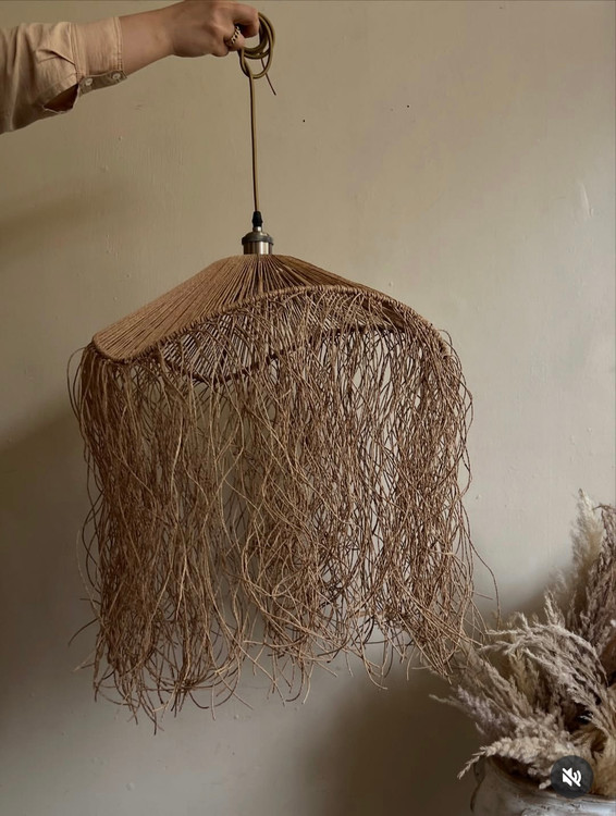 - بافت طبیعی کنف و رنگهای خنثی آن (مانند بژ، قهوهای یا خاکستری) به لوستر جلوهای گرم و دنج میبخشد.