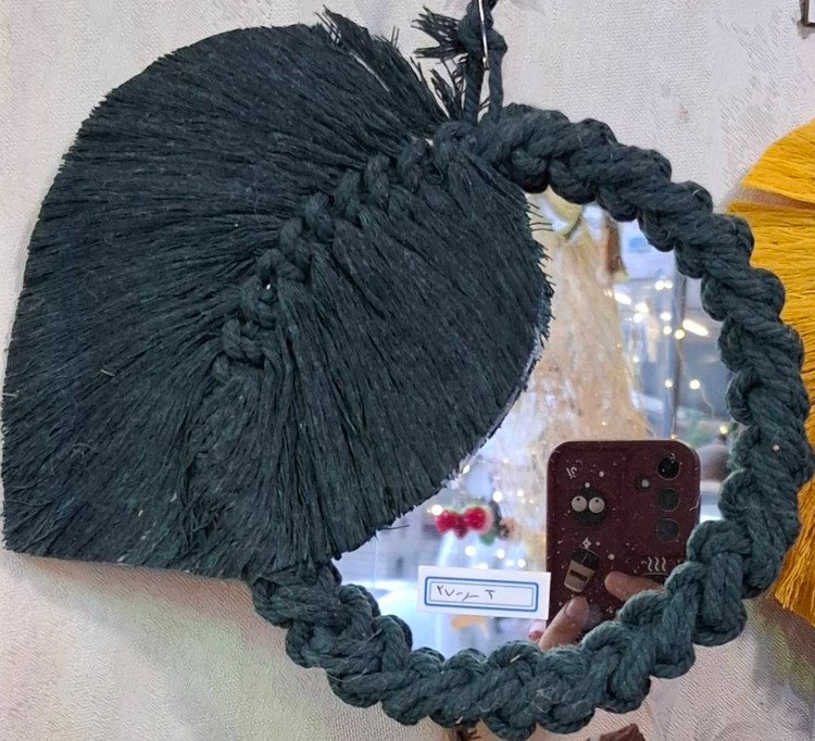 - **کیفهای دستی و پوشه** بافت مکرومه.
