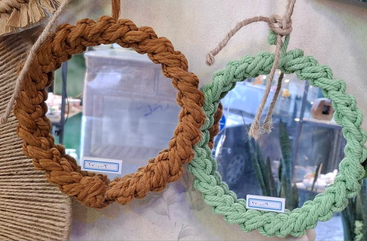 - **کیفهای دستی و پوشه** بافت مکرومه.
