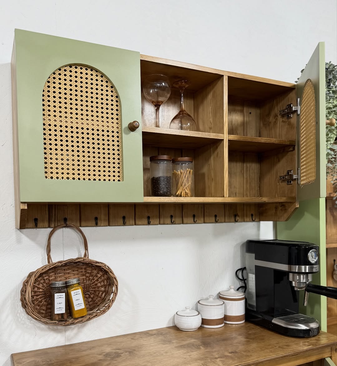 دوتا از کافیبار گنبدی با رنگ سبز ☘️ ساخته شده ازچوب نراد روس سمت راست برای کسایی که شرایط نصب به دیوار ندارن وست سمت چپ برای کسایی که صاحب ملکن ومیتونین کارشونو به دیوار پیچ کنن