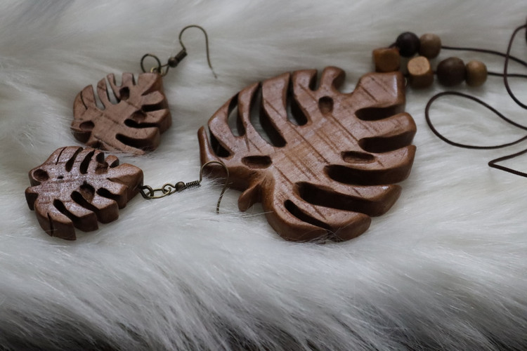 گردن آویز چوبی ست برگ انجیری